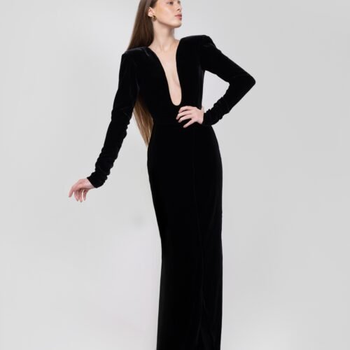 Black Gown with Taffeta Trail Skirt