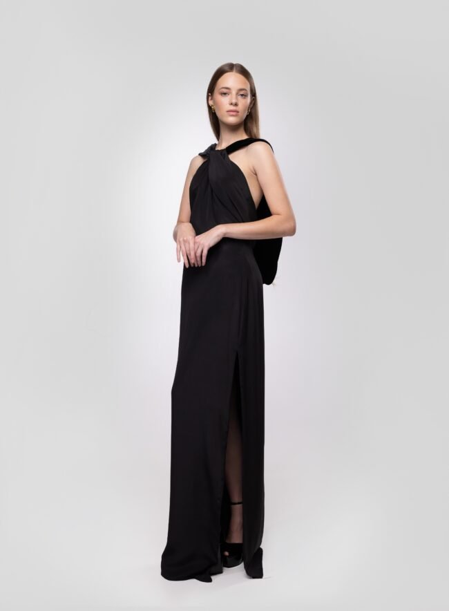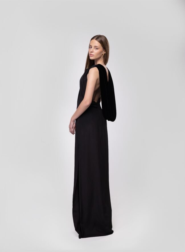 Embrace sensuality in this loose-fit burned red charmeuse silk gown from FIÈRE Atelier’s Mediterranean Symphony in Silk. The intricately draped back design gathers elegantly in the middle, creating a breathtaking silhouette. With a daringly low back and a timeless allure, this gown is a masterpiece of minimalist sophistication.